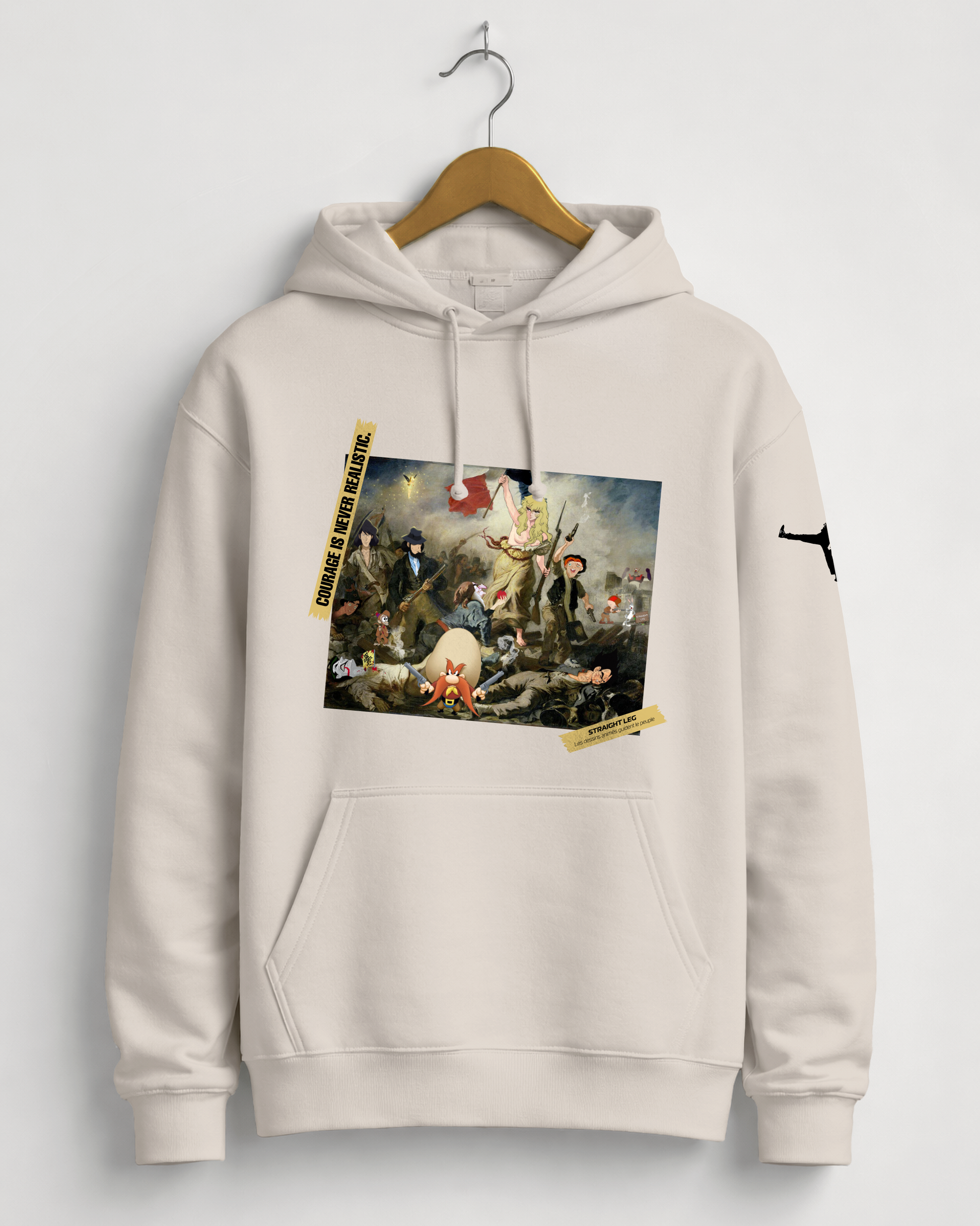 “Les dessins animés guident le peuple” è un mash-up contemporaneo ispirato al celebre dipinto La Libertà che guida il popolo di Eugène Delacroix, reinterpretato attraverso l’immaginario dei cartoni animati.